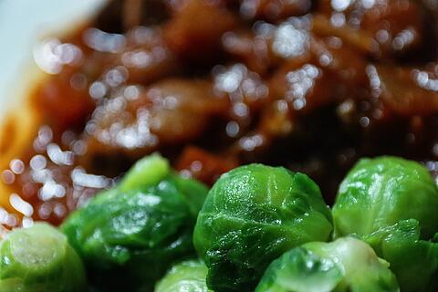 Hirschgoulasch mit Rahmrosenkohl dazu handgeriebene Spätzle